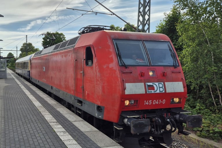 unsere mit NBÜ ausgestattete Lok (Vmax 140 km/h) ist in der Lage auch Reisezüge älterer Bauart kurzfristig zu bespannen